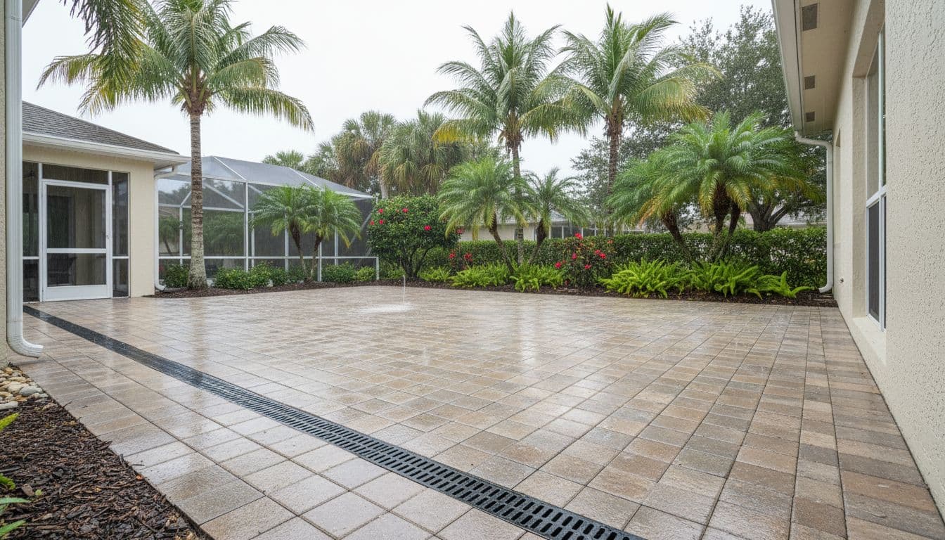 Rain hits Cape Coral hard each summer. Your patio turns into a puddle party. Water pools under pavers or concrete. It shifts slabs and invites cracks.