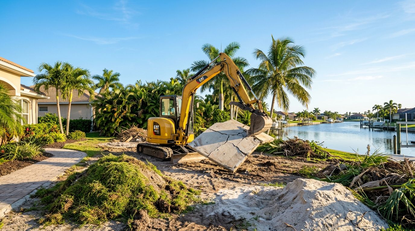 Utility runs (the quiet budget killer). Long gas, water, drain, and electrical runs can add thousands. Trenching through pavers or concrete takes time, and repairs after trenching can add more. If you need a new slab or a stable pad, a reputable concrete company often comes into the plan. (If you're also budgeting new flatwork, see concrete contractor Cape Coral.)